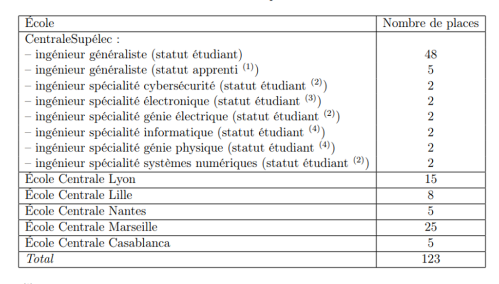 C’est un concours qui s’adresse aux étudiants en dernière année de Licence ou d’un cursus Bachelor conférant grade de Licence et qui souhaitent intégrer l’une des 6 Écoles Centrale que sont CentraleSupélec, Centrale Lyon, Centrale Nantes, Centrale Lille, Centrale Méditerranée, et Centrale Casablanca.